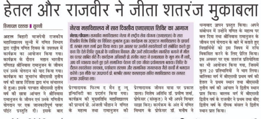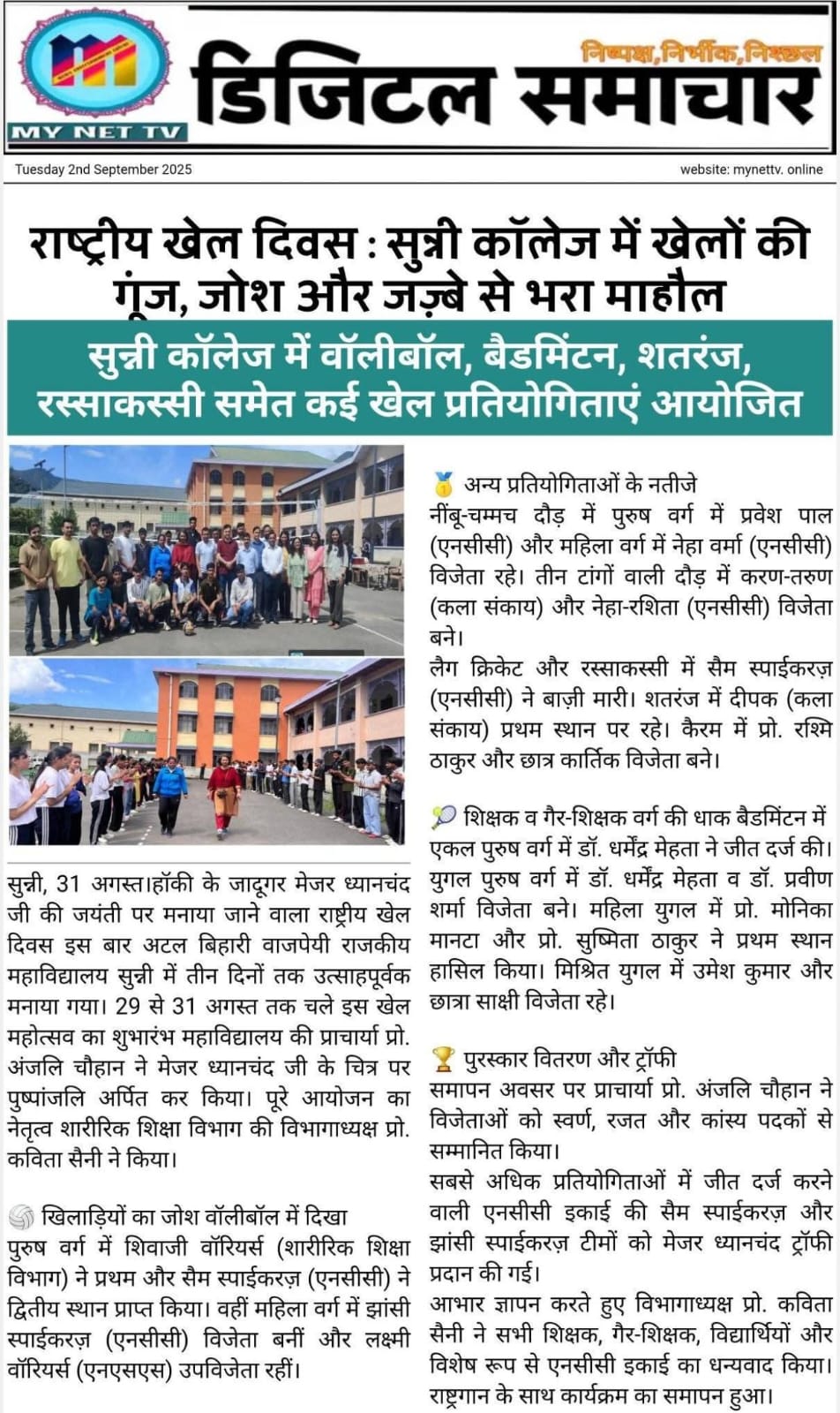 First Aid and Disaster Management training program were organized in the college ground by Home Guard team Sunni and Disaster Management Committee Shimla