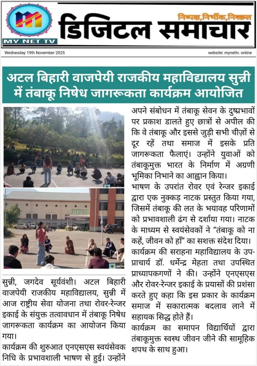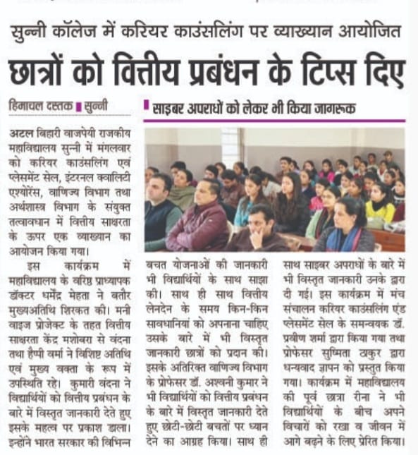 Career guidance and placement cell of college in collaboration with Money Wise centre for finical literacy Mashobra conducted Digital Payment Awareness and career counselling session